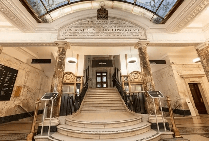 The University of Westminster was founded under the name the Royal Polytechnic Institution in 1838. Its first chairman was the English engineer, inventor and pilot George Cayley. At that time, this place was not only an educational institution but also a local attraction that was visited by lots of people. It housed various laboratories, lecture halls and exhibitions. Some scientific lectures, demonstrations and displays of interesting scientific models were available for visitors here as well. In 1841, the first public photography studio in Europe was opened at the university. The institution developed at a rapid pace. In 1848, a theatre was built here so that even more people could attend the optical shows that were often held here. However, later the Royal Polytechnic Institution encountered a number of difficulties. The first one was a fatal accident. The second one was a fire that damaged a large part of the building in 1879. It significantly affected the institution. In 1881, it was closed altogether. However, the following year, the university resumed its work and at the first lecture gathered three times more students than its representatives expected to see.